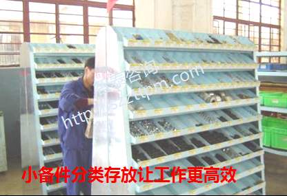 6S咨詢管理時對于一些種類多,數(shù)量多的小件物品,最好能制作一些存放架,使用存放盒來進行存放,對這些物品進行分類,分架,分層,分盒存放管理。