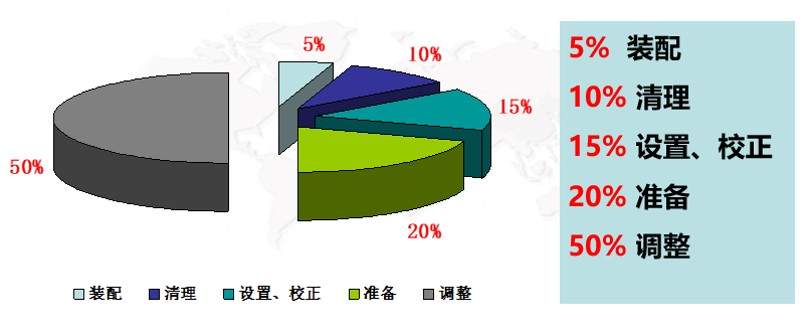最初使用在汽車制造廠,以達(dá)到快速的模具切換(Exchange of Dies);豐田現(xiàn)場(chǎng)人員經(jīng)過長(zhǎng)期探索,將沖壓工序沖床模具裝換調(diào)整所需時(shí)間,從1945年至1954年的3小時(shí),縮短為1970年以后的3分鐘,現(xiàn)在,豐田汽車公司利用設(shè)備快速裝換調(diào)整SMED法,所有大中型設(shè)備的裝換調(diào)整作業(yè)均能在10分鐘之內(nèi)完成。企業(yè)產(chǎn)品切換時(shí)間由4小時(shí)縮短為3分鐘。