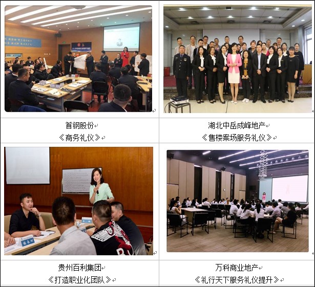 曾為中國人壽、中國平安、中鐵一局、國家電網(wǎng)等企業(yè)定制實(shí)戰(zhàn)禮儀課程,課程滿意度95分以上;