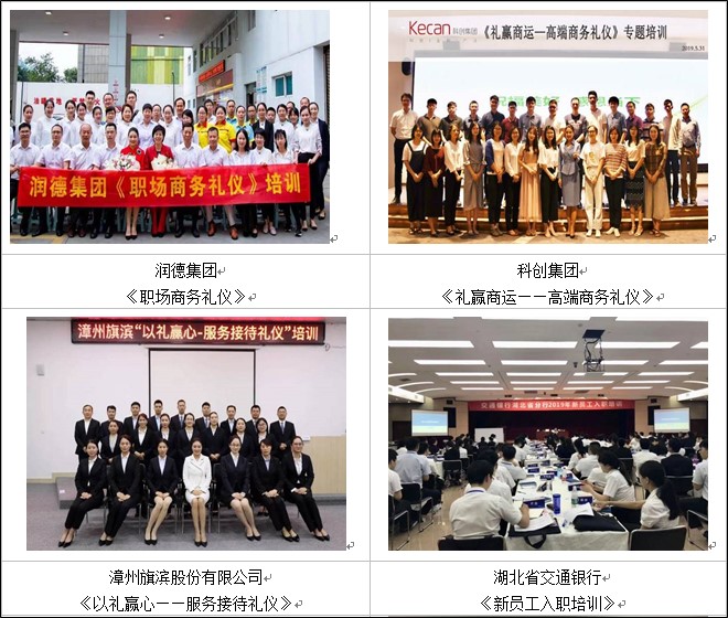 ? 曾為深圳鵬海運(yùn)公司定制化開發(fā)禮儀課程,從禮儀的立場(chǎng)、形象禮儀、社交禮儀、服務(wù)與溝通禮儀多方位塑造,為公司打造一支精英團(tuán)隊(duì)。
