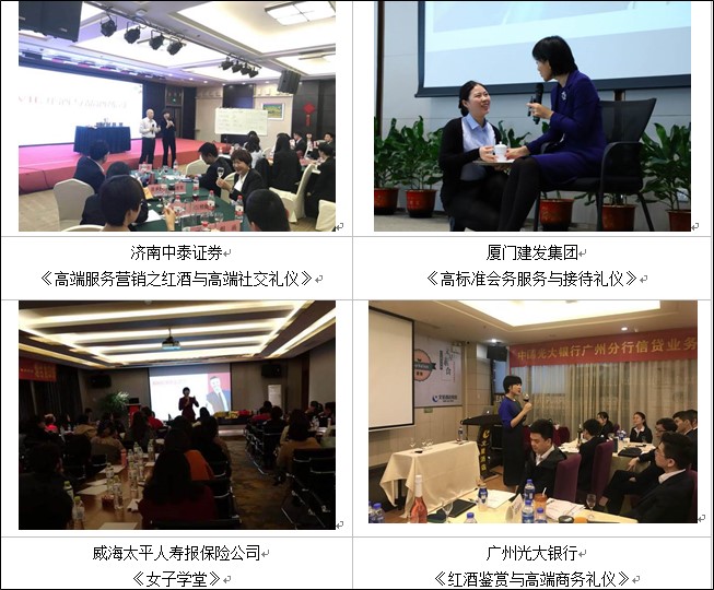 青島日報社、青島電視臺、青島人民廣播電臺、青島新聞網(wǎng)、帆船賽世界杯、青島市海洋節(jié)、青島國際帆船、中國石化、中國銀行、招商銀行、勞斯萊斯、賓利、奔馳、本田、海信集團、海爾集團、一汽大眾、上海市人民政府機關(guān)企事業(yè)單位、青島市政府、青島市體育局、百名海外院士青島行、克利伯環(huán)球帆船賽青島站、多家國企、民企、上市、跨國企業(yè)及政府單位的危機公關(guān)和高端服務(wù)禮儀特聘講師/顧問。