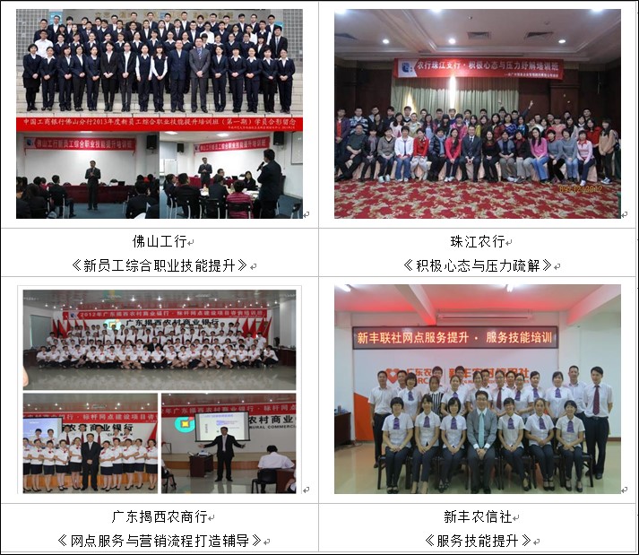 《網點行長綜合管理技能提升》 《廳堂服務營銷一體化》 《新員工職業(yè)心態(tài)與素質》 |