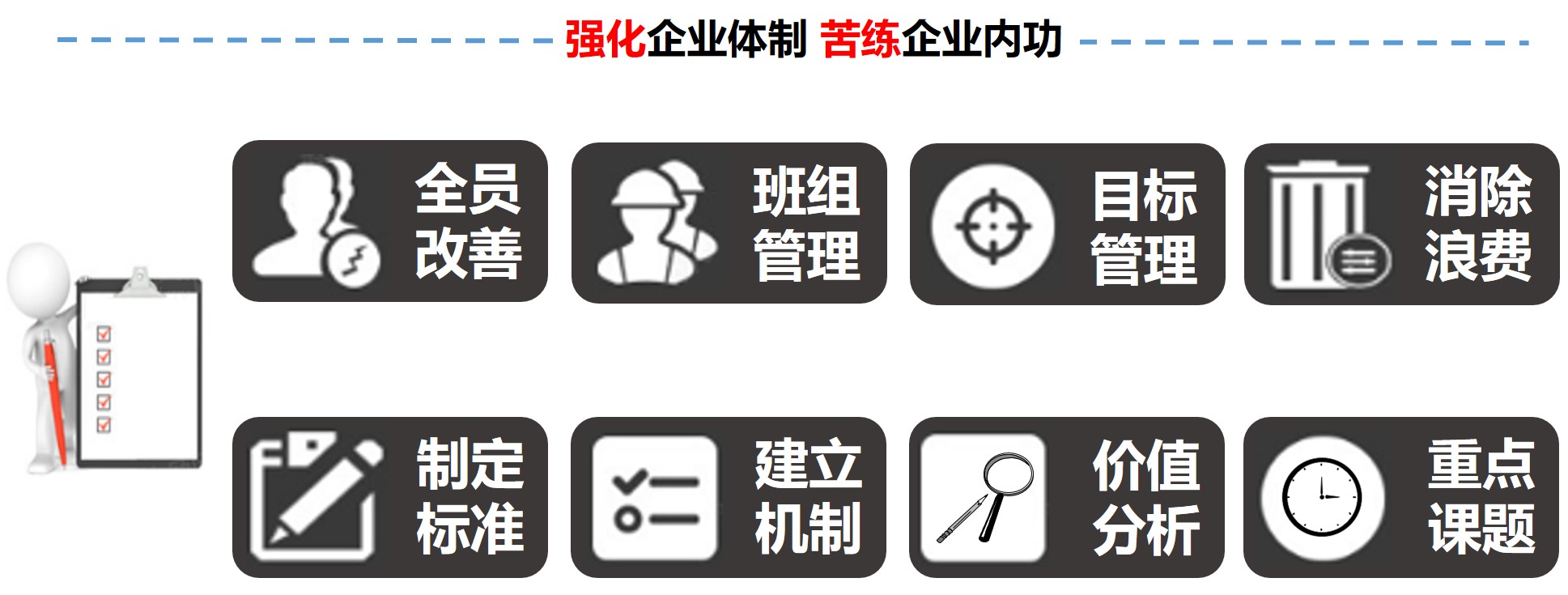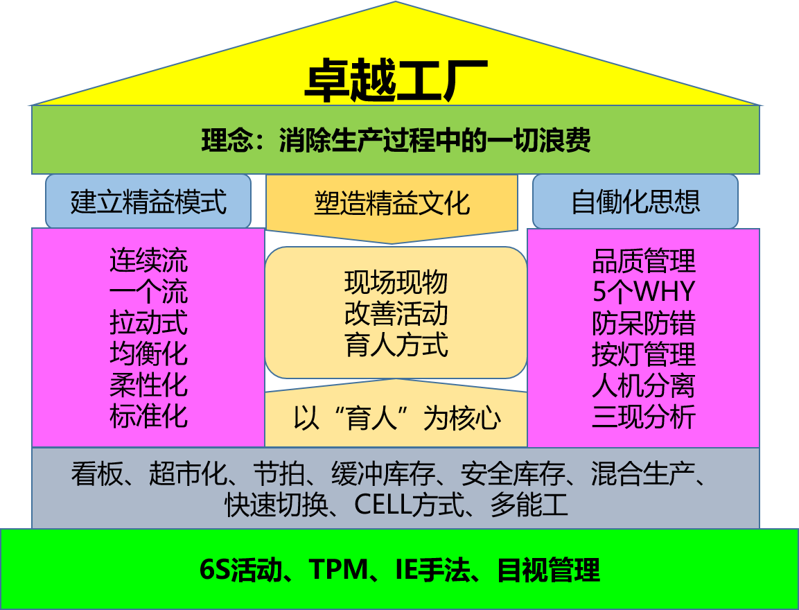 精益管理運營系統(tǒng)是對企業(yè)運營方式的重新整合,用來組織和管理企業(yè)產(chǎn)品開發(fā)、生產(chǎn)運營以及供應商和客戶的關系。精益運營系統(tǒng)關注整個價值鏈,從接受訂單接受至訂單完成作為一個整體,通過快速的問題解決持續(xù)改進,通過消除不增值活動來增加增值工作的比例。采取準時制(Just In Time)原則來管理資產(chǎn)和現(xiàn)金;應用帶人智的自働化(Jidoka)來保證品質、交期、管理速度及戰(zhàn)略聚焦。