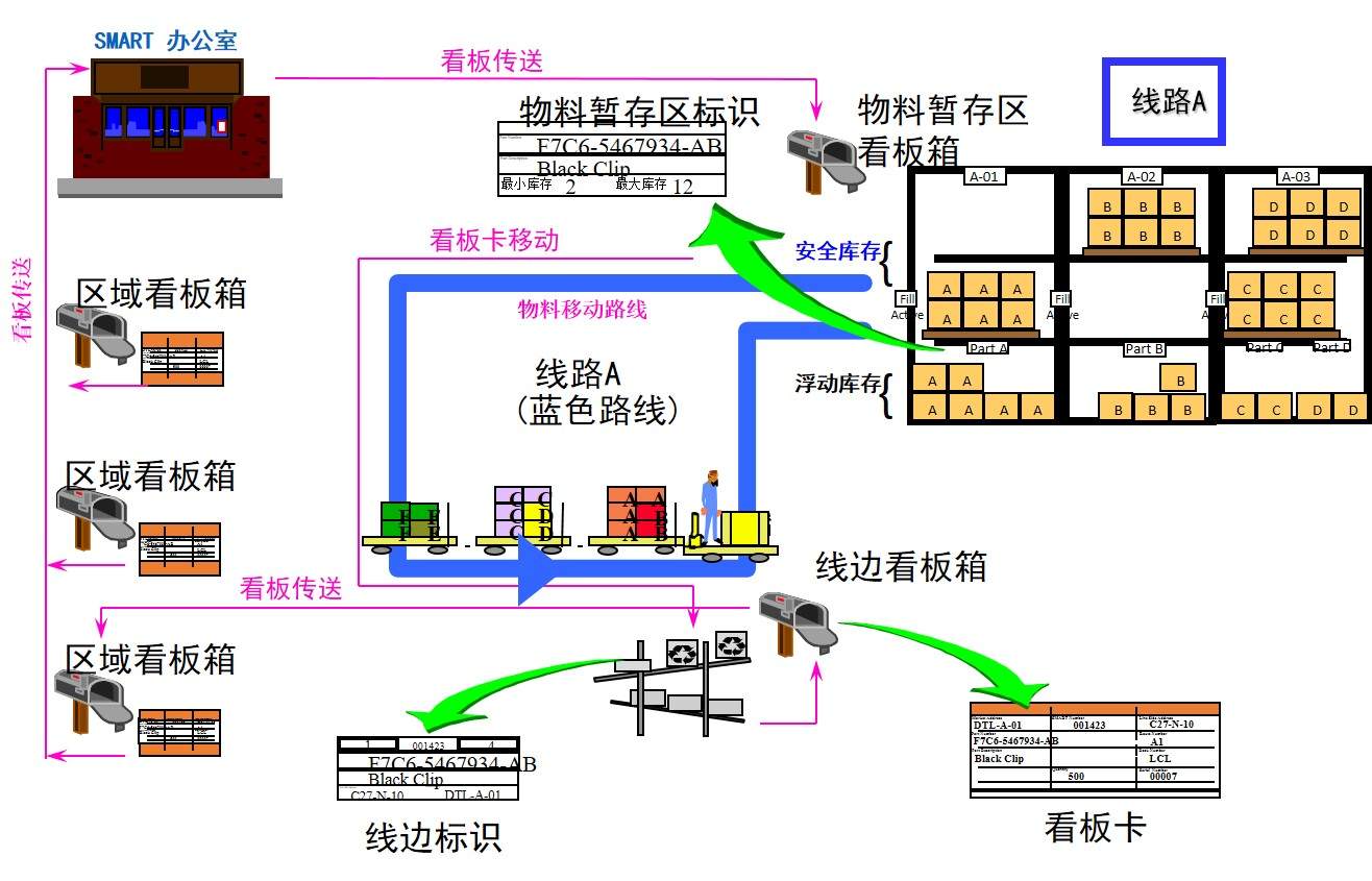 3.拉動(dòng)看板系統(tǒng)具有良好的目視性,使得管理者或計(jì)劃員能夠一眼就獲得需要了解的生產(chǎn)進(jìn)度情況。