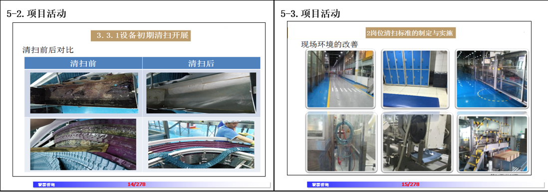 TPM 1 STEP是設(shè)備初期清掃:首先要對設(shè)備進(jìn)行立體式的清掃,設(shè)備要做到漆見本色鐵見光的效果,員工通過對設(shè)備的親密接觸和清掃活動,提升員工對設(shè)備的理解,熟識設(shè)備的性能,掌握設(shè)備的三現(xiàn),編制設(shè)備清掃標(biāo)準(zhǔn)化內(nèi)容,減少設(shè)備劣化,提高設(shè)備信賴性。