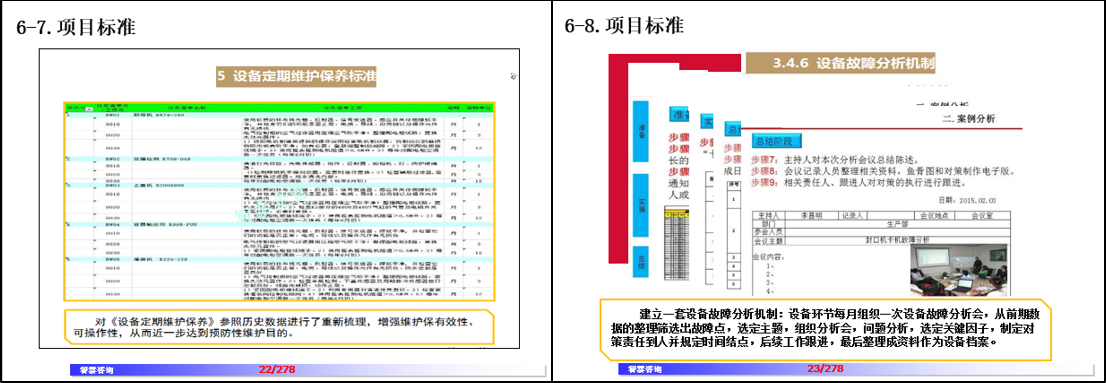 TPM 6 STEP是品質(zhì)保全活動:統(tǒng)合和優(yōu)化前期所有的管理表、點(diǎn)檢表和標(biāo)準(zhǔn)化內(nèi)容,制定和優(yōu)化故障和不良的再發(fā)防止措施,學(xué)會和利用品質(zhì)分析工具提升設(shè)備品質(zhì)能力,員工學(xué)會和運(yùn)用品質(zhì)管理工程圖。