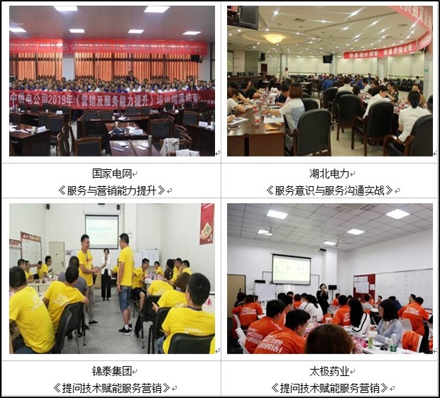 為電網(wǎng)培養(yǎng)近2000位優(yōu)質(zhì)服務(wù)人員:多次應(yīng)邀為國家電網(wǎng)旗下四川電力、河南電力、寧夏電力及南方電網(wǎng)旗下云南電網(wǎng)、貴州電網(wǎng)公司等電力系統(tǒng)進(jìn)行《電力營銷服務(wù)人員技能提升》、《轉(zhuǎn)訴為金—用心服務(wù),溝通降訴》《服務(wù)明星—優(yōu)質(zhì)服務(wù)提升》等課程培訓(xùn),每年授課高達(dá)180天,為電網(wǎng)培養(yǎng)近2000位優(yōu)質(zhì)服務(wù)人員,客戶滿意度達(dá)95%以上。