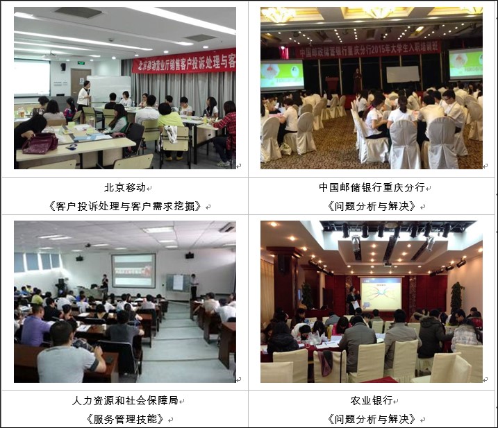 曾受邀兄弟單位及省級(jí)醫(yī)院、電力系統(tǒng)做《打造營(yíng)業(yè)廳服務(wù)藍(lán)圖》及《客戶(hù)投訴處理培訓(xùn)》、《問(wèn)題分析與解決》,得到業(yè)界的高度認(rèn)可,好評(píng)如潮