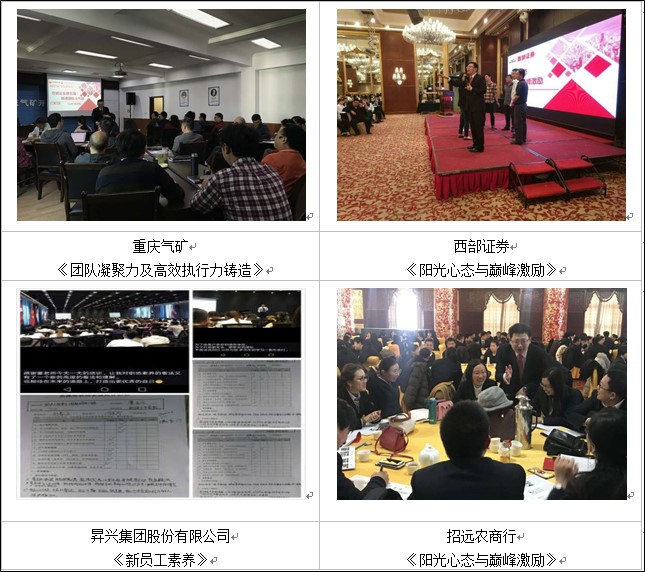 董老師專注于心態(tài)、團(tuán)隊管理技能訓(xùn)練,并連續(xù)四年授課百天以上,授課企業(yè)達(dá)1000多家,受訓(xùn)學(xué)員達(dá)4萬余人,滿意度高達(dá)95%以上,深受企業(yè)追捧與喜愛,創(chuàng)下了讓同一家培訓(xùn)機構(gòu)連續(xù)三年每年返聘100天課程的行業(yè)奇跡!
