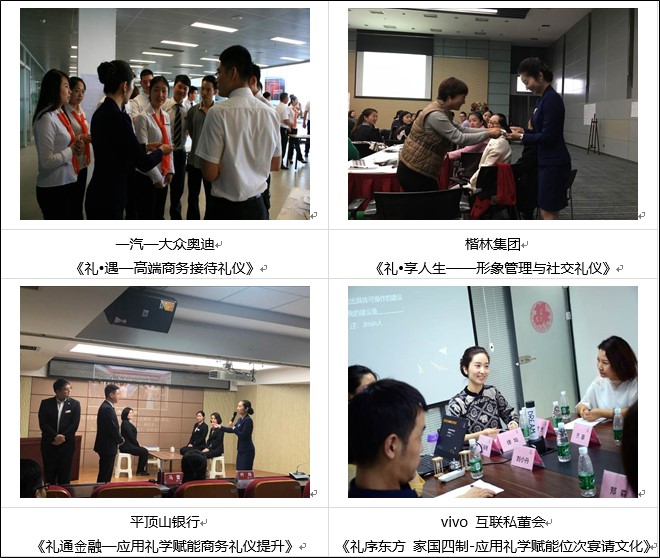 →授課累計(jì)近千場(chǎng),給近10萬(wàn)名企業(yè)員工講授《禮贏商運(yùn)》、《禮譽(yù)人生》、《禮贏職場(chǎng)》等應(yīng)用禮學(xué)系列課程,深受學(xué)員喜愛(ài)。
