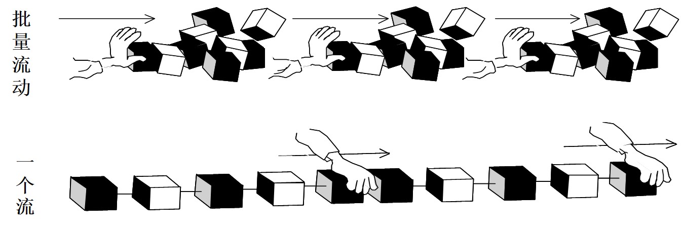 “一個流”生產(chǎn)的第一要點就是要使產(chǎn)品生產(chǎn)的各道工序做到幾乎同步進(jìn)行,使產(chǎn)品實現(xiàn)單件生產(chǎn)、單件流動。單件流動是為了避免以批量單位進(jìn)行加工,前道工序的加工一結(jié)束就立刻轉(zhuǎn)到下一道工序,從而使得工序間在制品的數(shù)量接近于零。