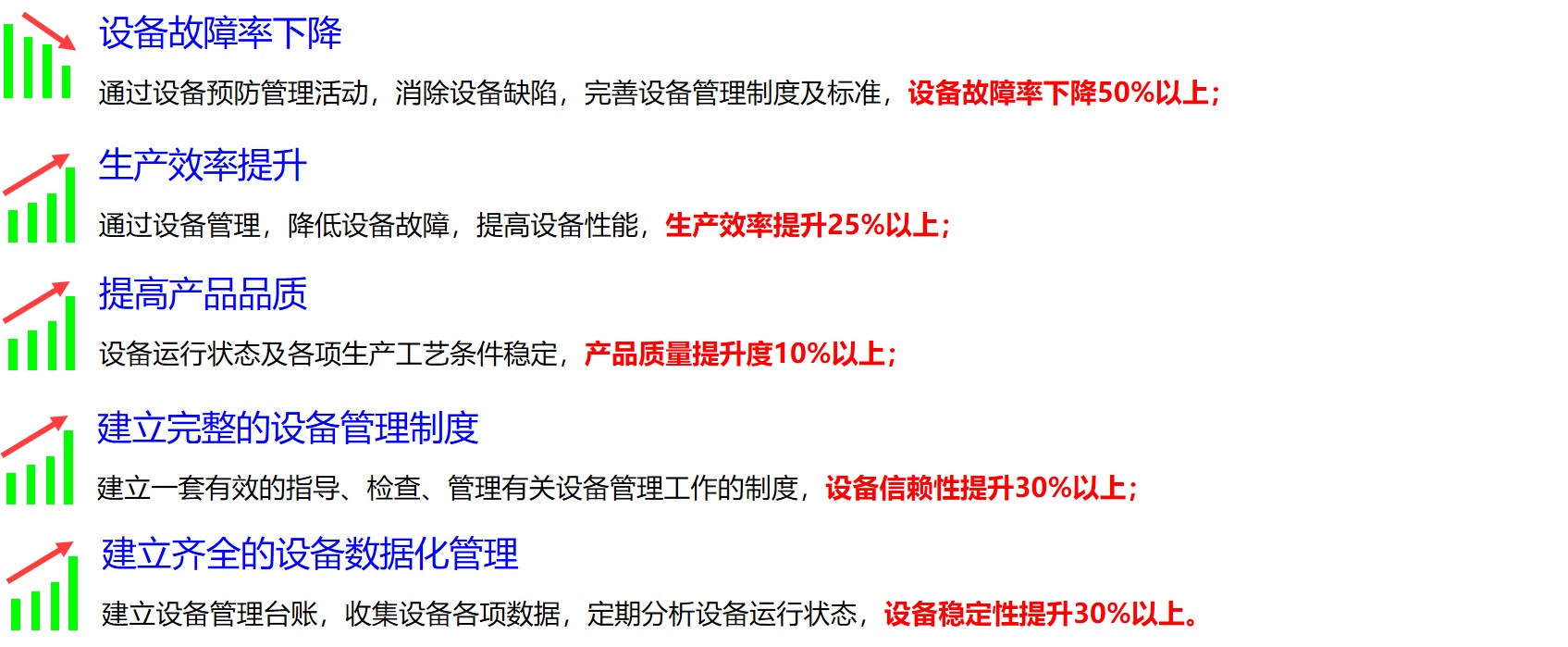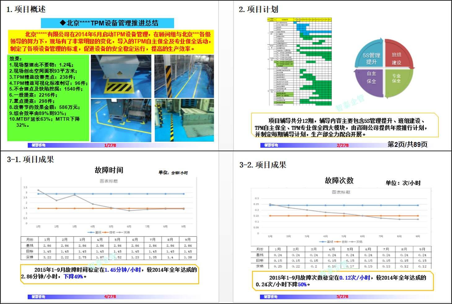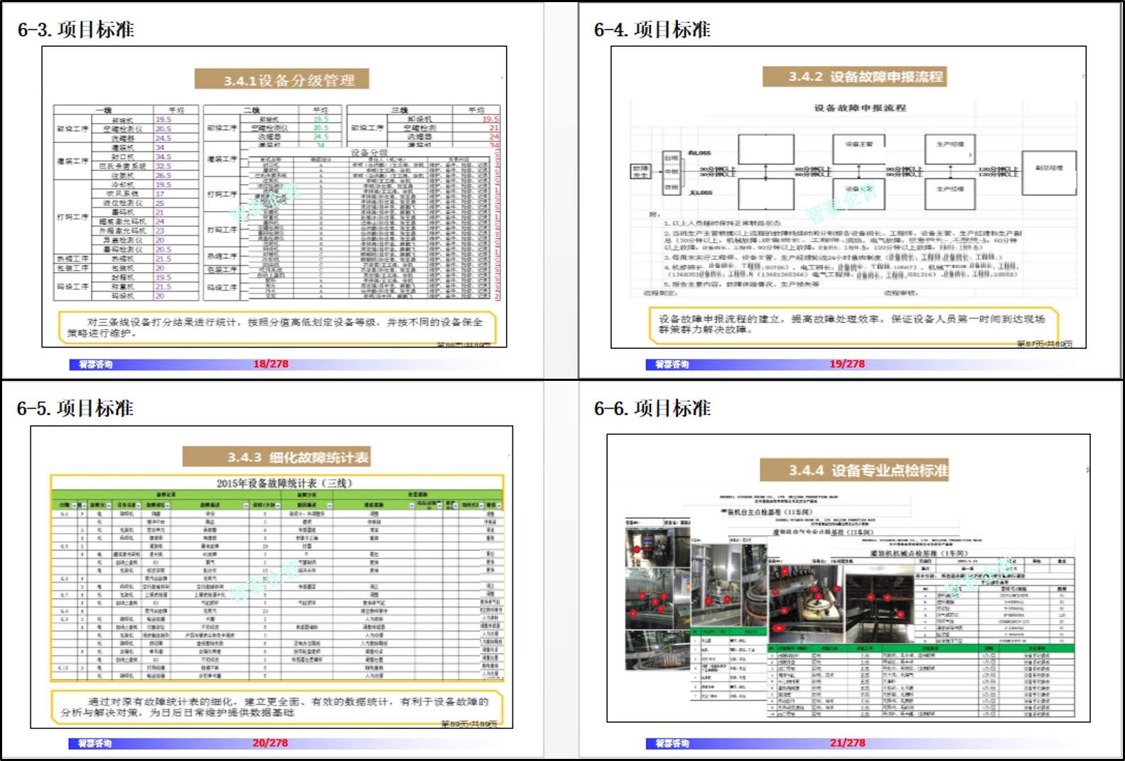 智泰咨詢下屬的TPM咨詢公司為企業(yè)推進(jìn)的TPM管理活動(dòng)中,為企業(yè)設(shè)備故障率下降推進(jìn)了大量的制度及標(biāo)準(zhǔn),通過全員消除設(shè)備的缺陷并改善及復(fù)原,并對(duì)設(shè)備進(jìn)行部分改良,促進(jìn)設(shè)備長期穩(wěn)定運(yùn)